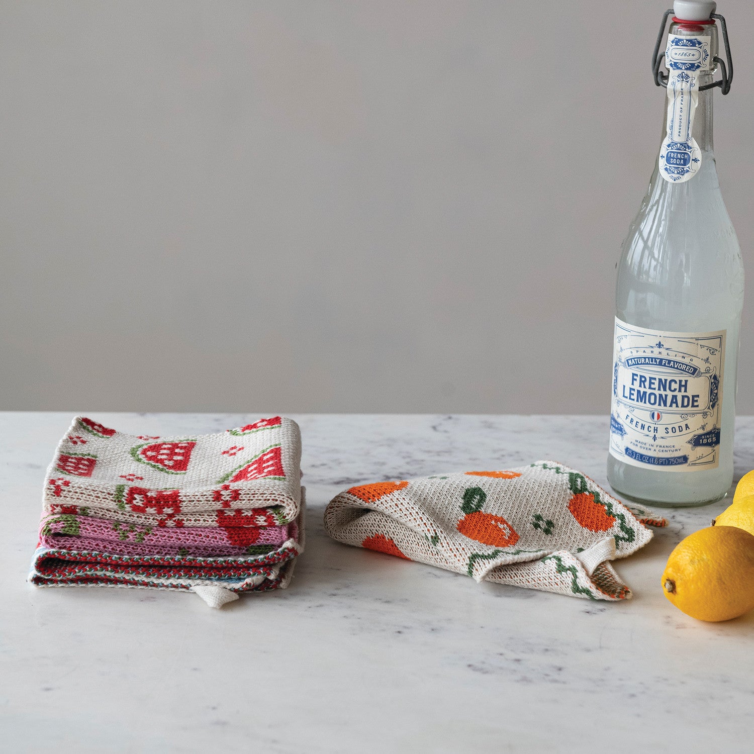10-1/2" Square Cotton Knit Dish Cloth w/ Fruit Pattern, Multi Color