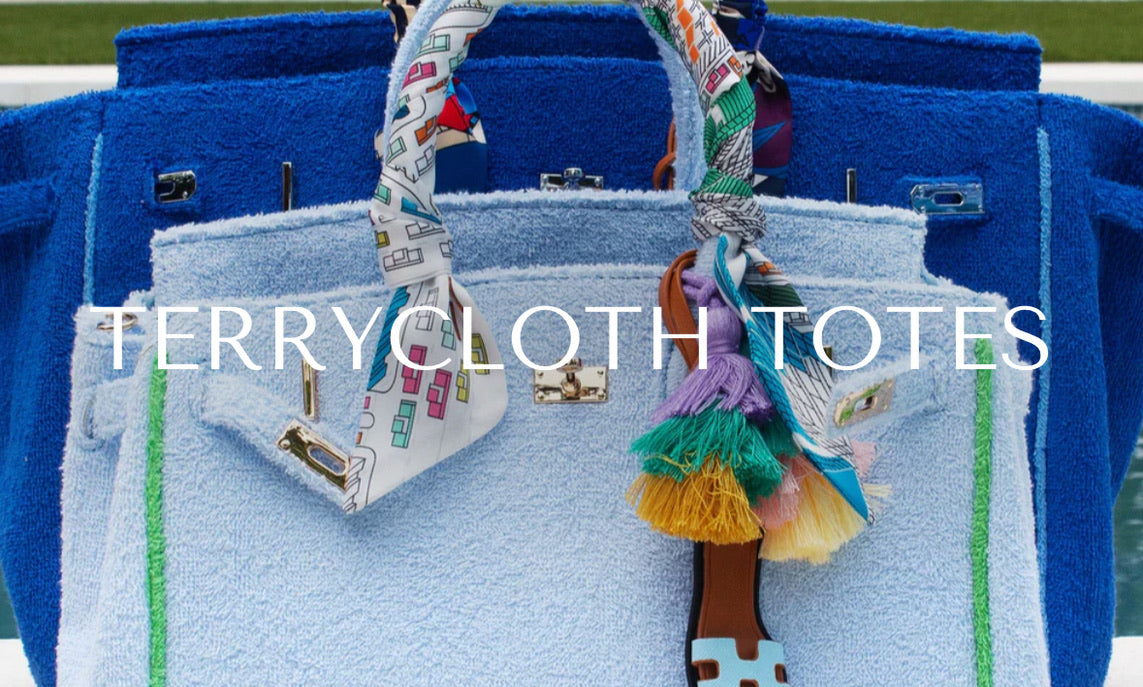The Hampton's Terry cloth Designer Inspired Tote Bags will escalate any wardrobe all year around! Elevate your outfit and style.