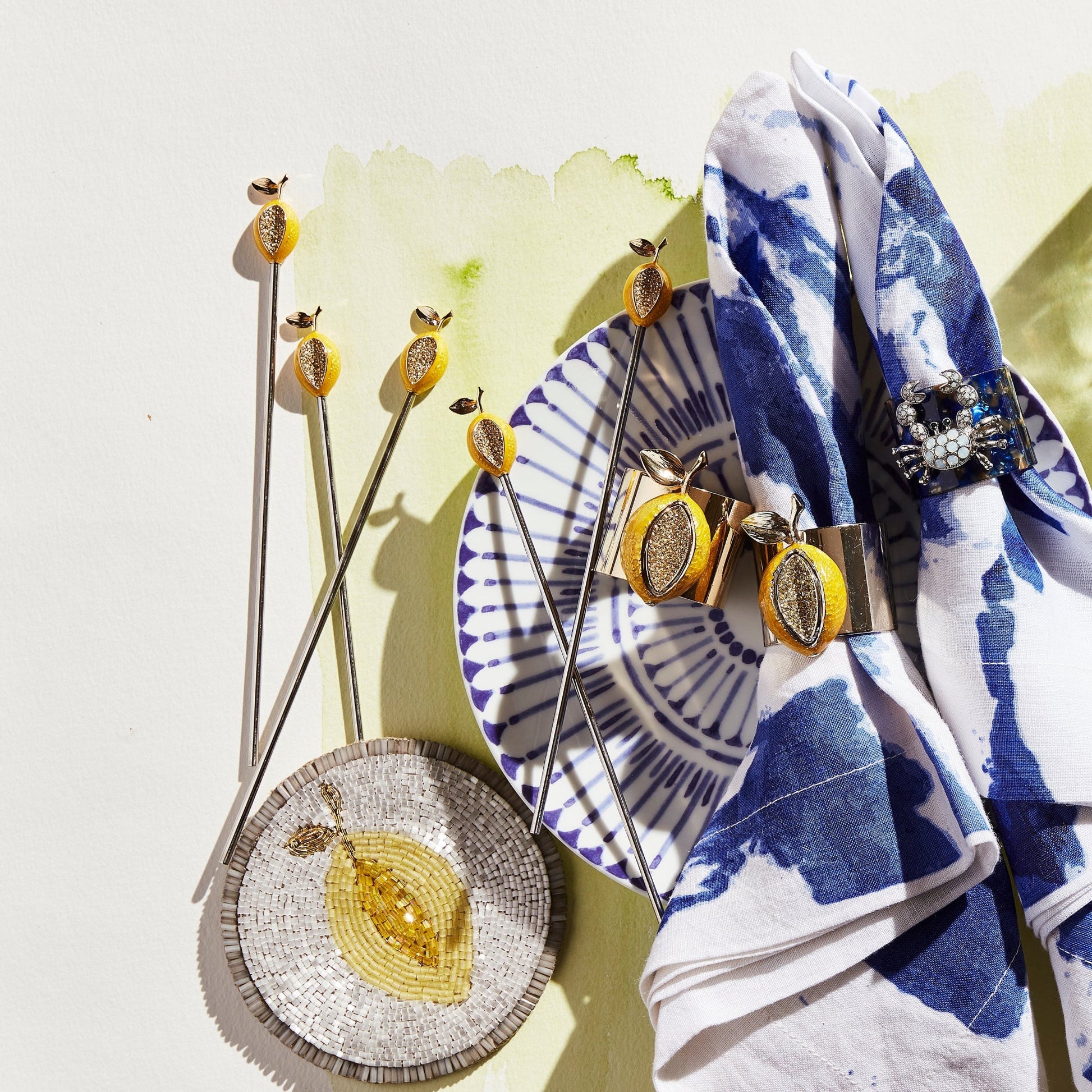 Lemons are my new favorite fruits... so bright, fresh and happy despite their sour nature! Imagine this stunning swizzle stick in your freshly made lemonade! How divine! And if that lemonade is laced with a little something stronger... well then, even better! Pair these with our lemon linens for a super fresh brunch setting! Cheers!