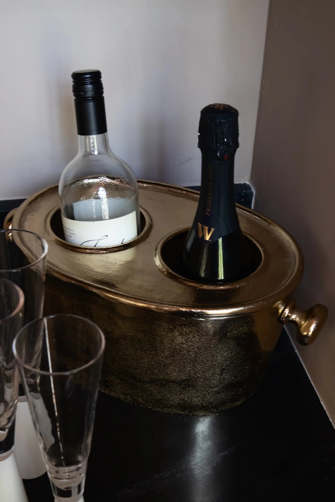 We are in love with our 2-Bottle Metal Wine Holder. Make any day a celebration with this double compartment wine chiller. Perfect for your patio picnics or simply toasting the end of the work day, this is one staple that will keep your favorite beverages chilled for all of your special moments.